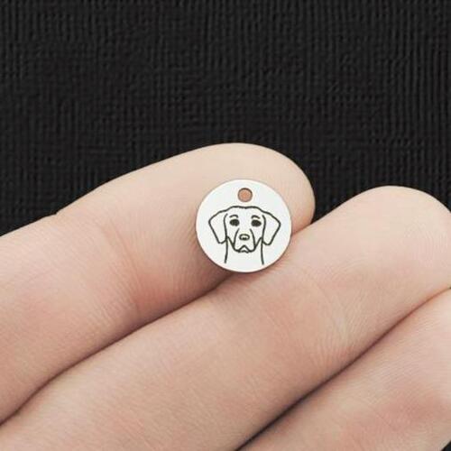 Lab dog face image laser engraved stainless steel round charms, from our exclusive line designed by Bohemian Findings.