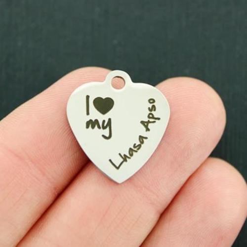 "I heart my Lhasa Apso" laser engraved stainless steel heart charms, from our exclusive line designed by Bohemian Findings.