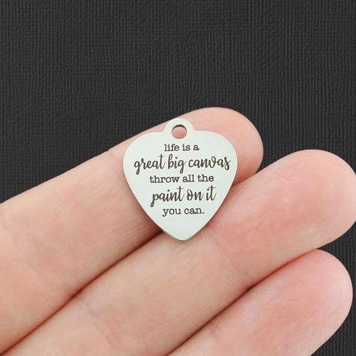 "Life is a great big canvas, throw all the paint on it you can" laser engraved stainless steel heart charms, from our exclusive line designed by Bohemian Findings.
