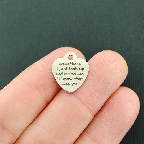 "Sometimes I just look up smile and say 'I know that was you'" laser engraved stainless steel heart charms, from our exclusive line designed by Bohemian Findings.
