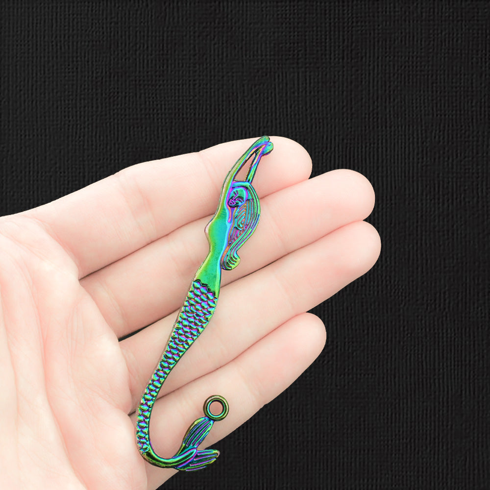 Mermaid bookmark base rainbow electroplated charm, in a zinc alloy metal.
