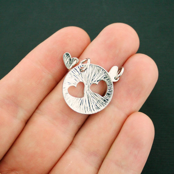 3 piece heart antique silver tone charm set with attached jump ring, in a zinc alloy metal.