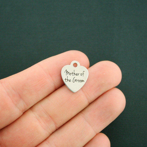"Mother of the Groom" laser engraved stainless steel heart charms, from our exclusive line designed by Bohemian Findings.