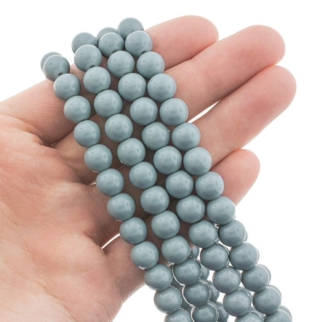 Round glass beads in a 8mm round with a polished finish. Available in Crimson, Grey, Orange, Green, Ruby, and Lime Green.