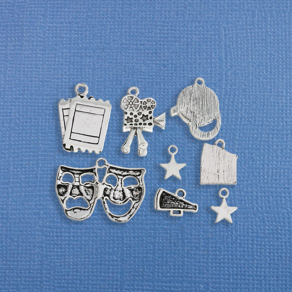 Movie themed collection of antique silver tone charms, in a zinc alloy metal.