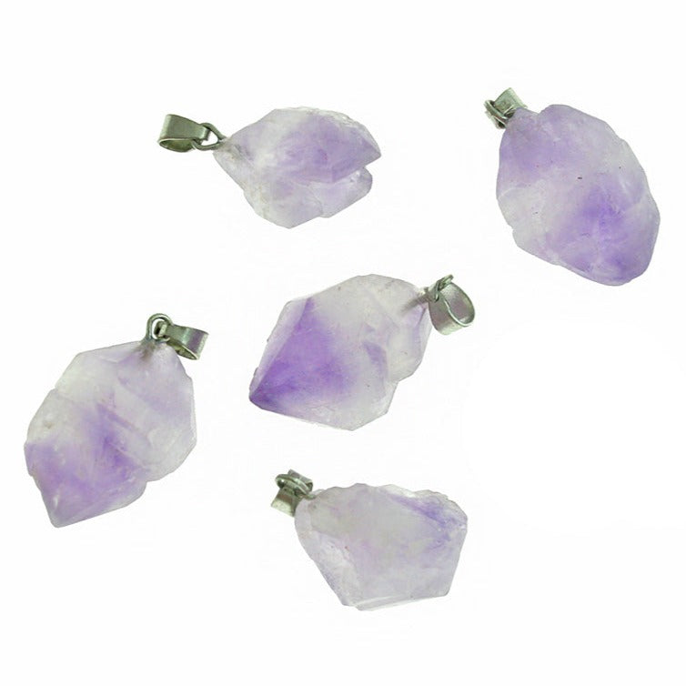 Natural nugget gemstone charms, with a silver tone iron alloy loop. Available in amethyst, crystal, or rose quartz!