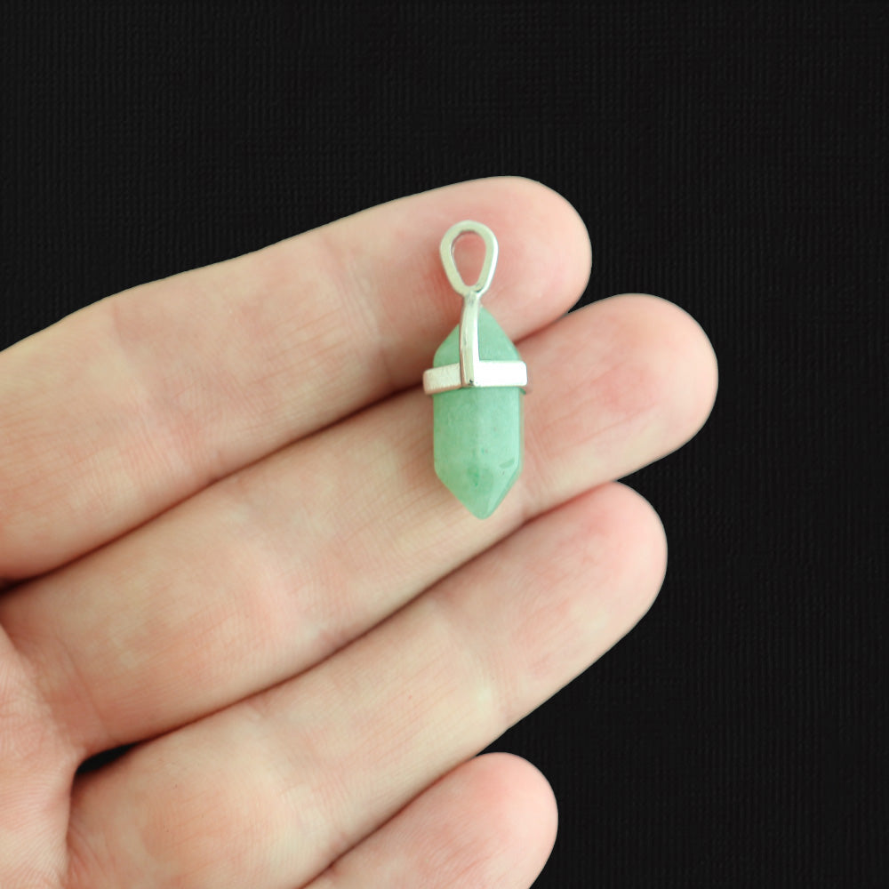 Natural gemstone charms, with silver tone brass cap. Available in aventurine, rose quartz, obsidian, or lapis lazuli!