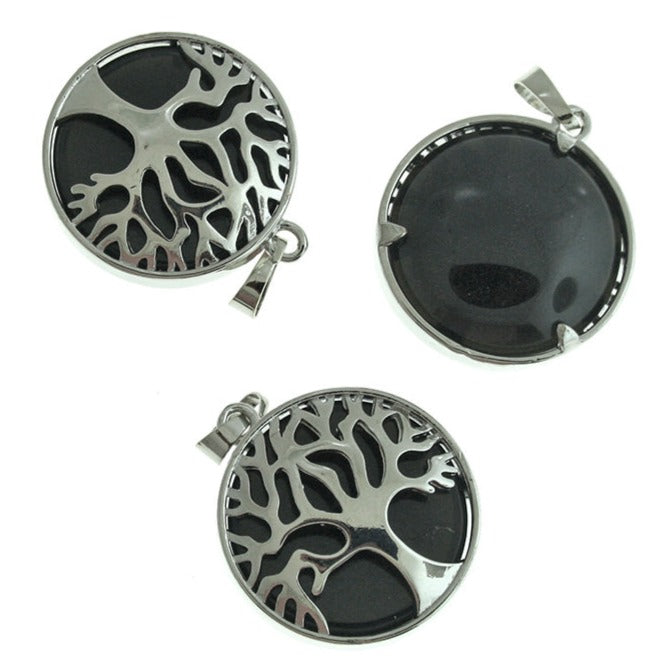 Natural gemstone charms, with silver tone brass tree of life and bail. Available in aventurine, amethyst, obsidian, and quartz!