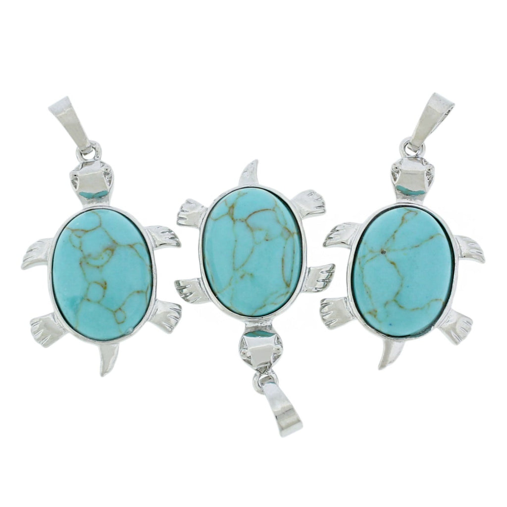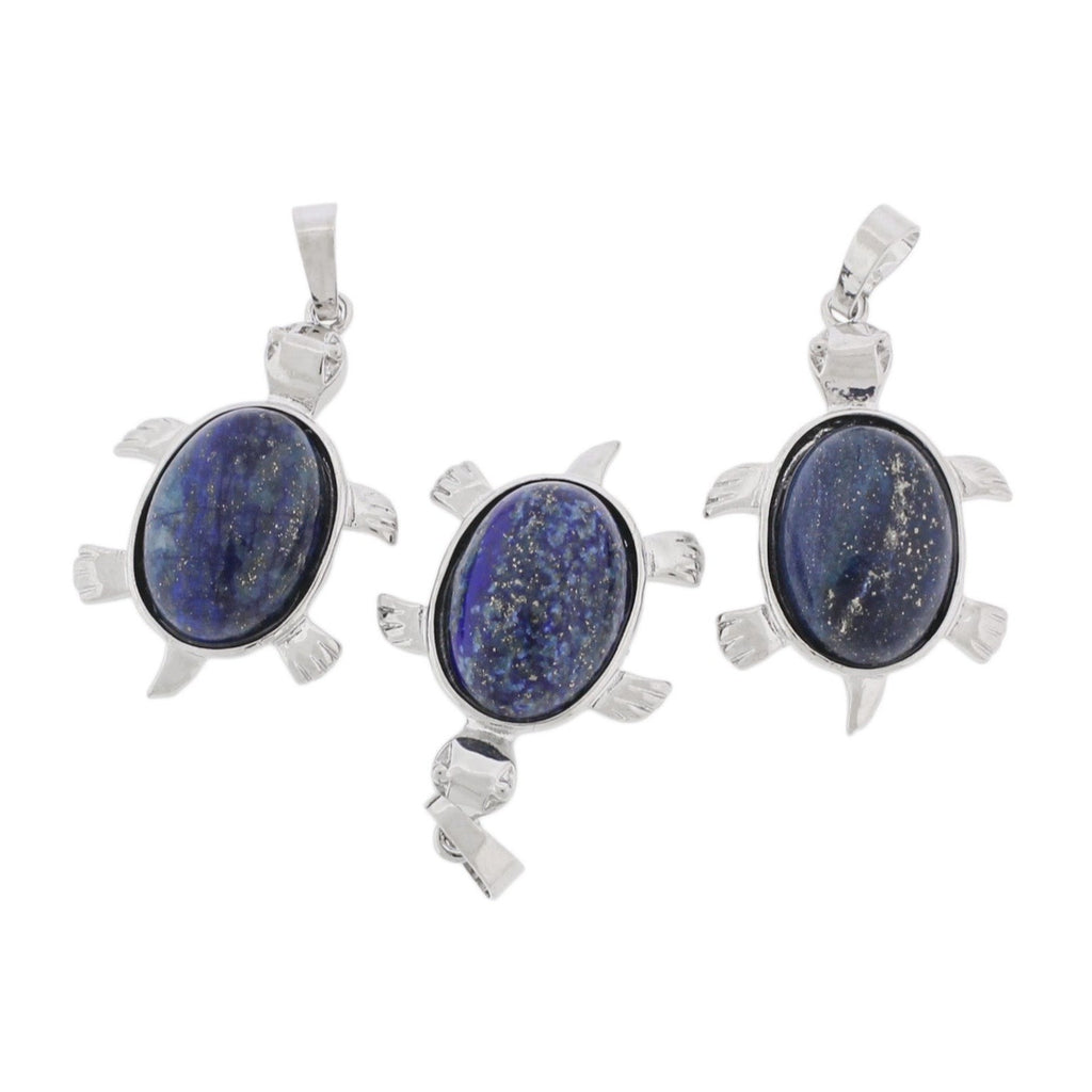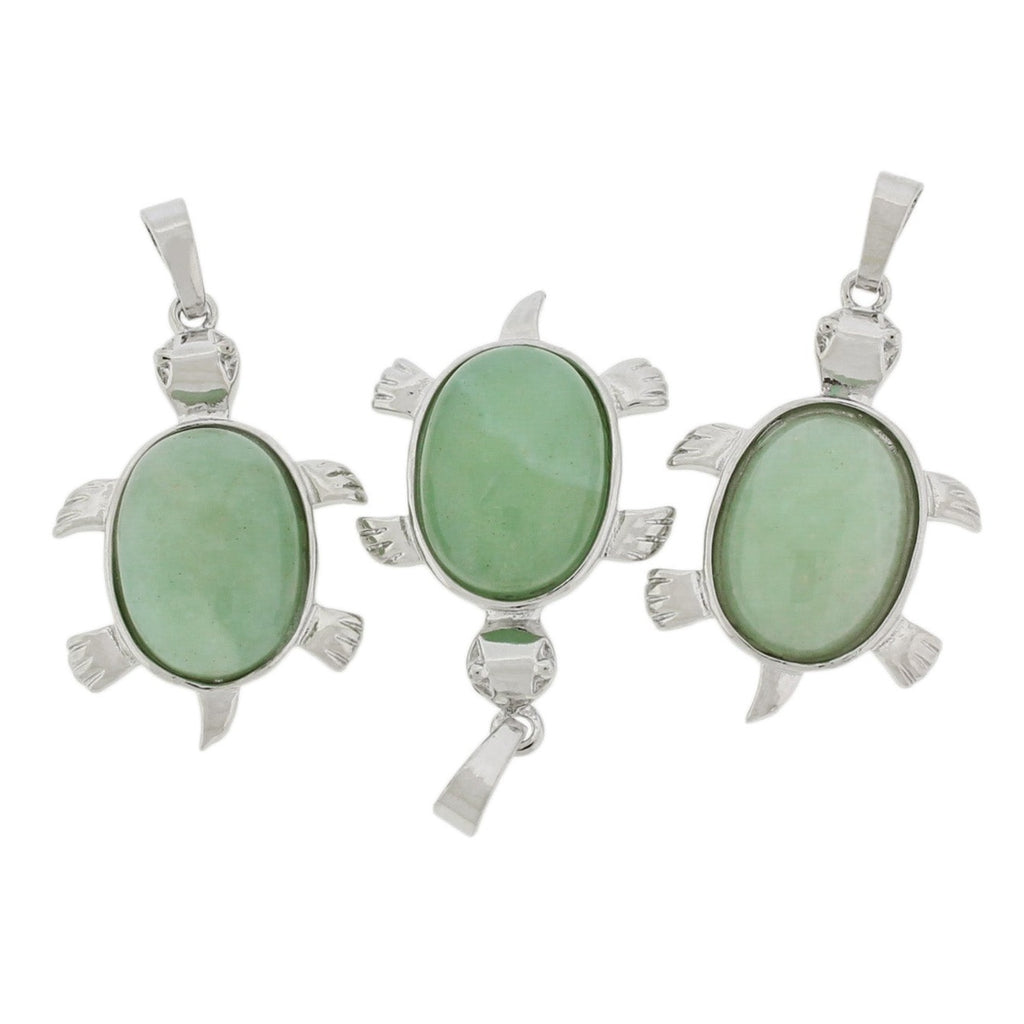 Natural turtle pendant with a silver tone brass loop! Every pendant is different and fascinating in its detail. Available in aventurine, lapis lazuli, opalite, amethyst, malachite, turquoise, white turquoise, or snowflake obsidian!