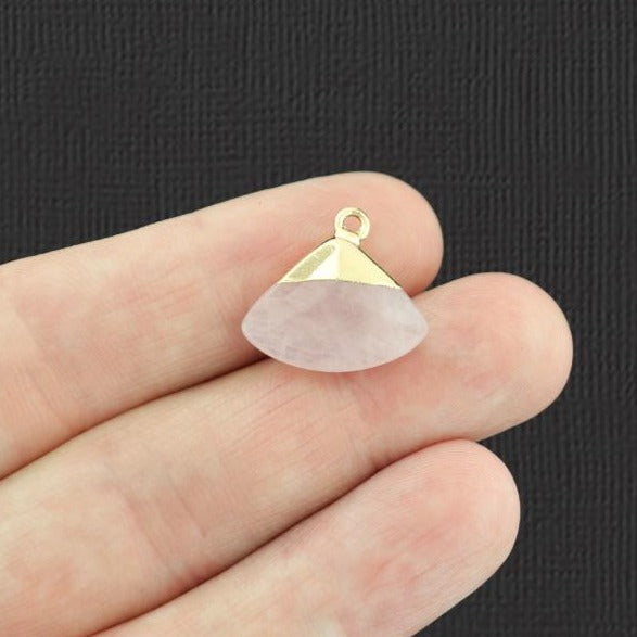 Natural faceted triangle gemstone connector with gold tone brass loop and edge plating! Available in rose quartz and turquoise.