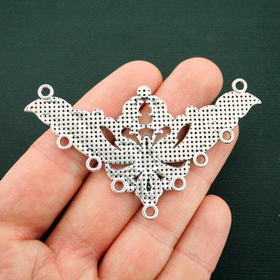 Floral fish festoon connector antique silver tone charms with blank settings, in a zinc alloy metal.
