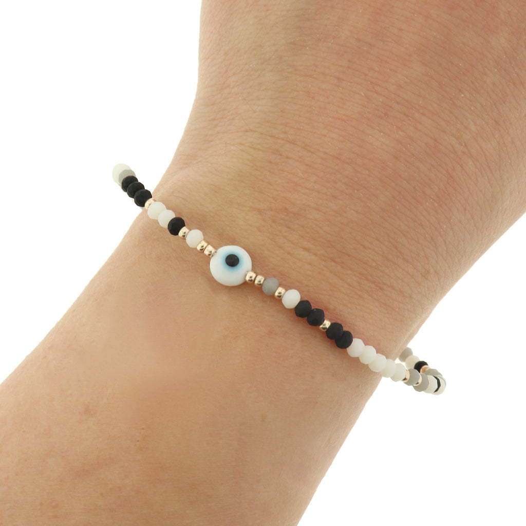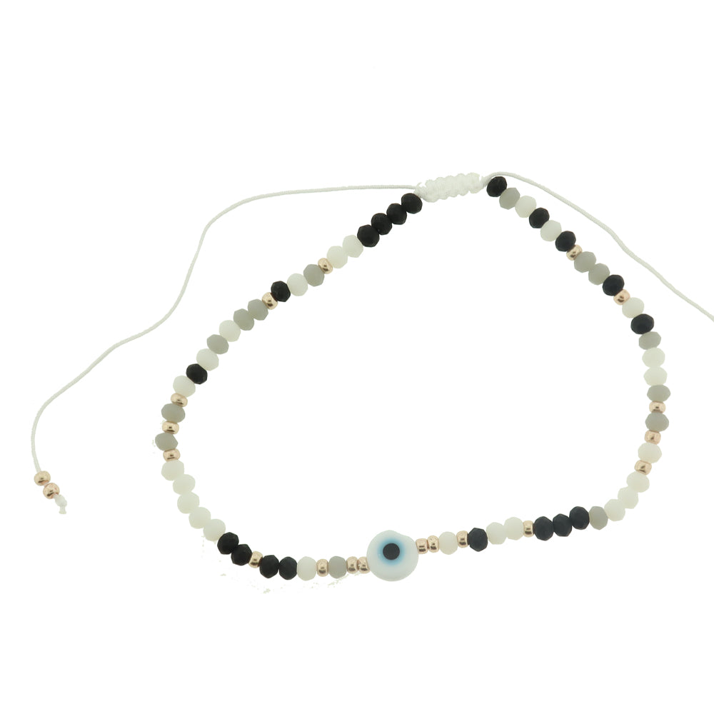 White nylon cord bracelet with Evil eye lampwork glass beads, and glass spacer beads; perfect for bracelet stacks, couple and friendship bracelets!