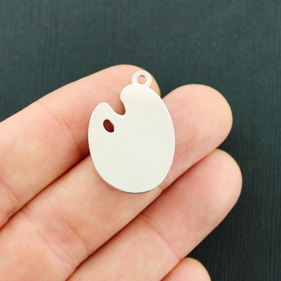 Paint pallet silver tone charm, in a zinc alloy metal and enamel.