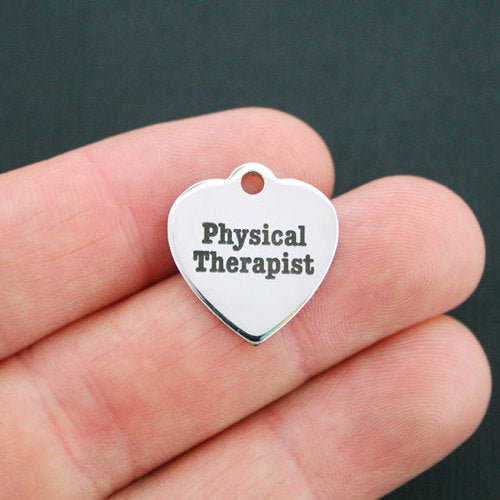 "Physical Therapist" laser engraved stainless steel heart charms, from our exclusive line designed by Bohemian Findings.