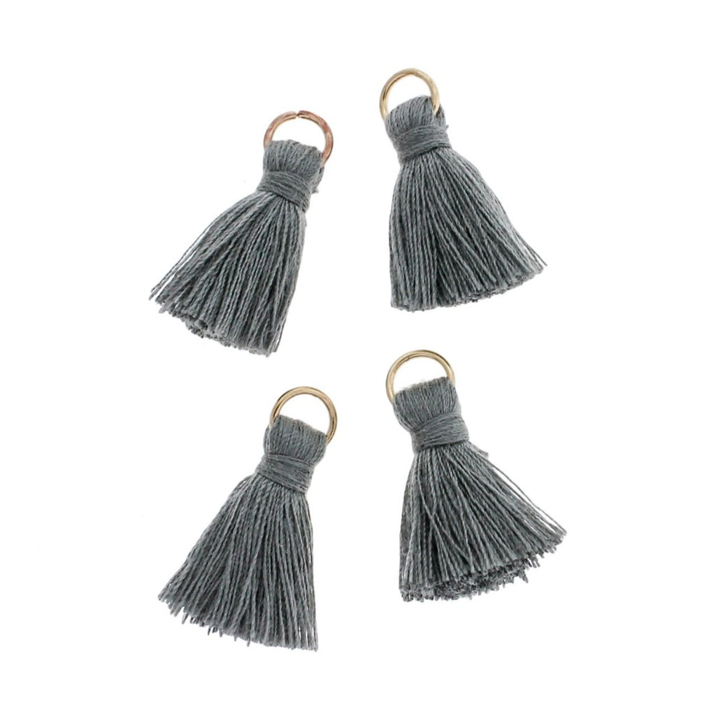 Polyester cotton tassels with a light gold tone jump ring attached. Available in a variety of colors: assorted, black, grey, light pink, purple, orange, violet, or yellow!