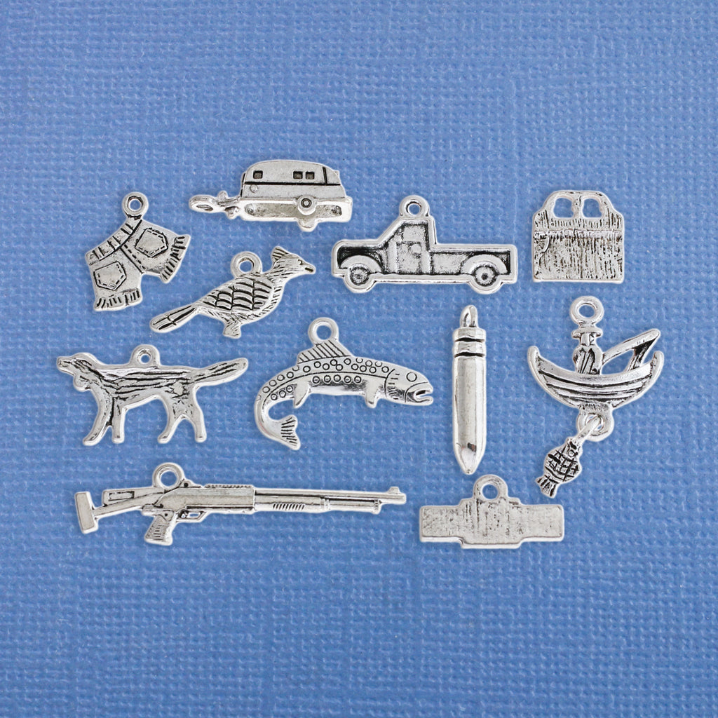 Redneck themed collection of antique silver tone charms, in a zinc alloy metal.
