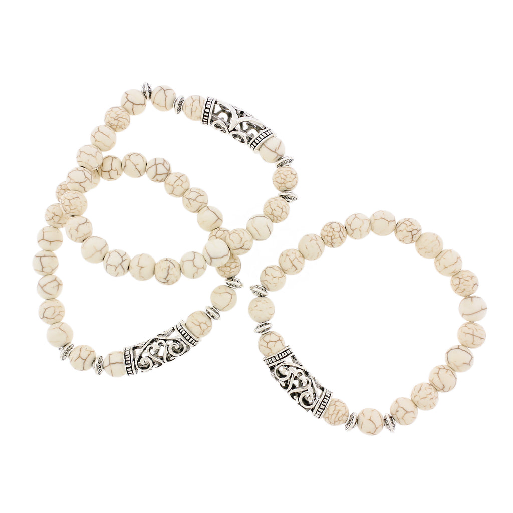 White howlite beaded bracelets with an antique silver tone bail beads, with a polished finish. Perfect for bracelet stacks, couple and friendship bracelets!