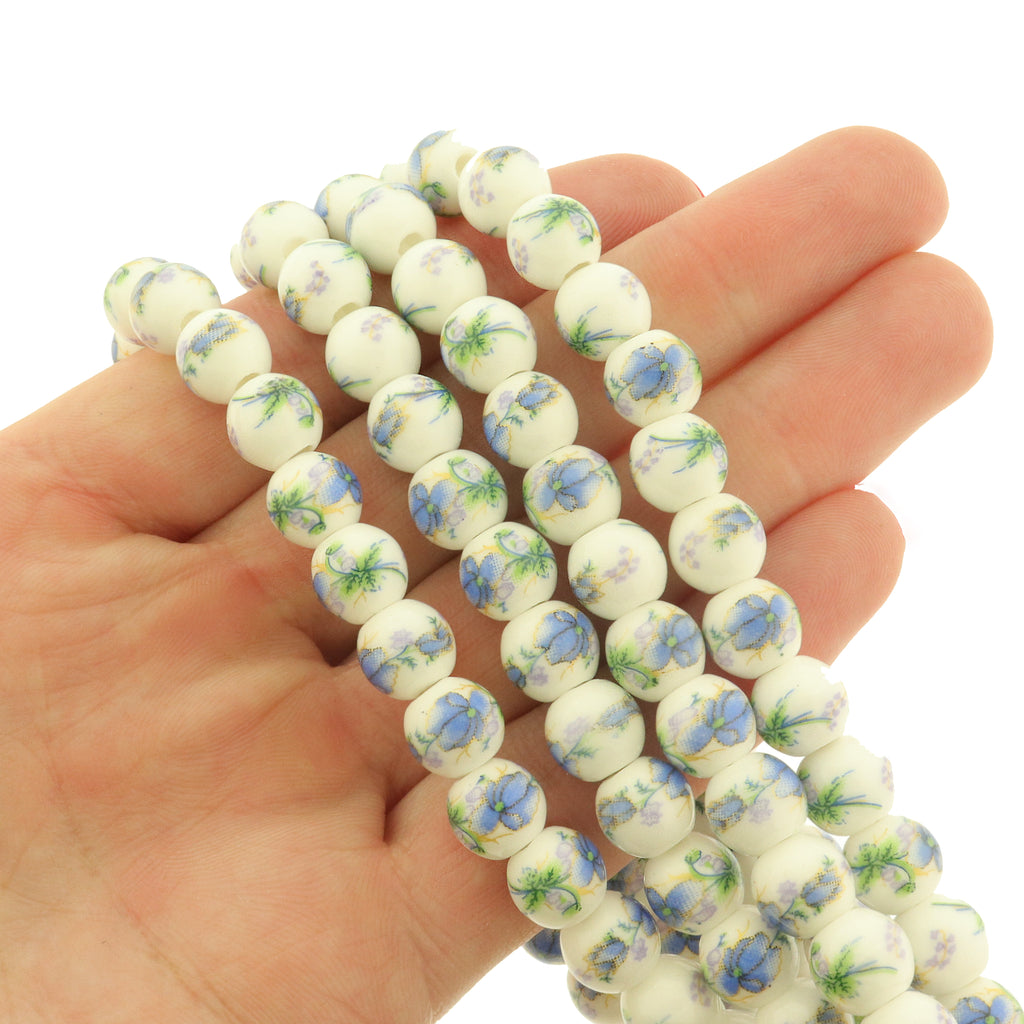 Choose from two different styles of flower ceramic round beads - red (includes tones of purple, green and white) or blue (with green, purple, and yellow). Super eye catching thanks to their polished finish!