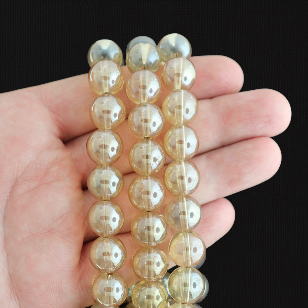 Rainbow electroplated orange glass beads in a 12mm round, with a polished finish.