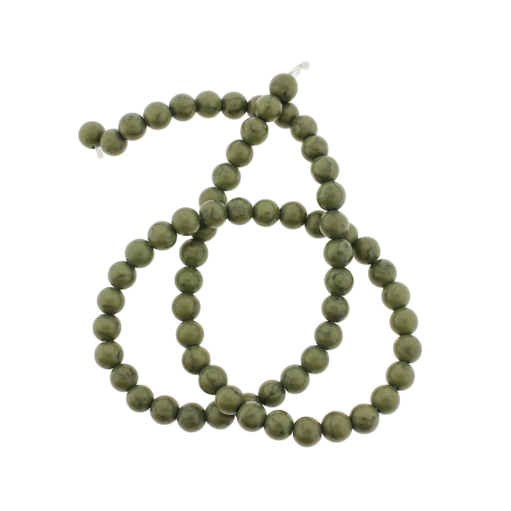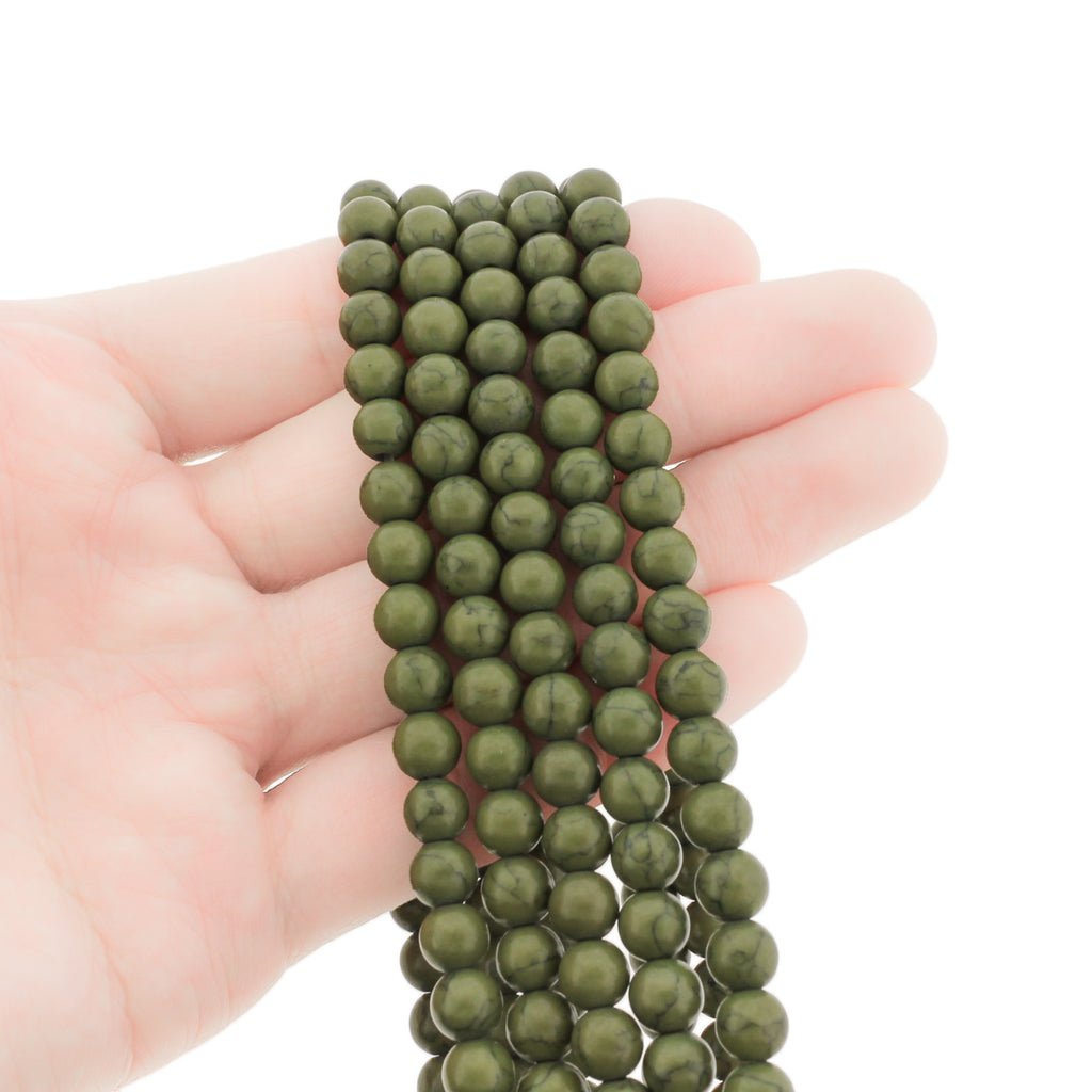 Green and black marble imitation gemstone beads in a 6mm round, with a polished finish.
