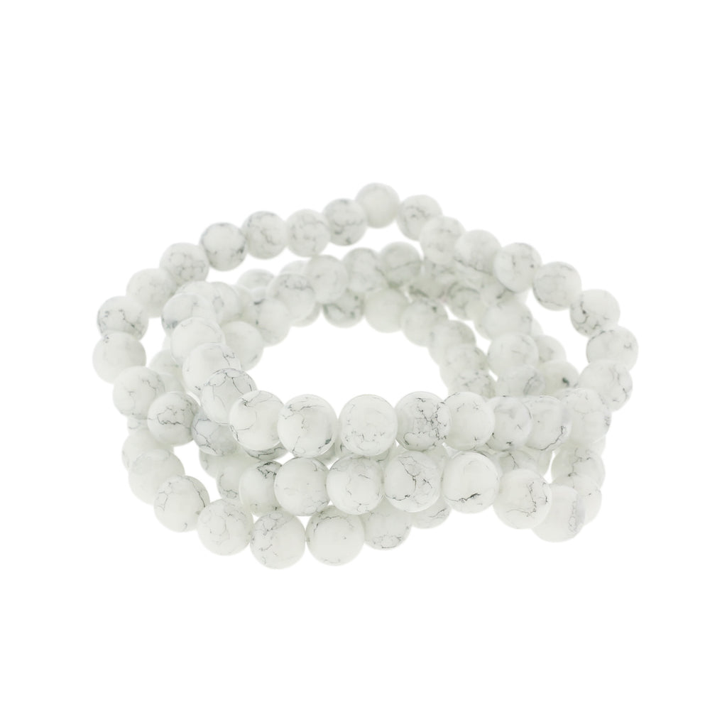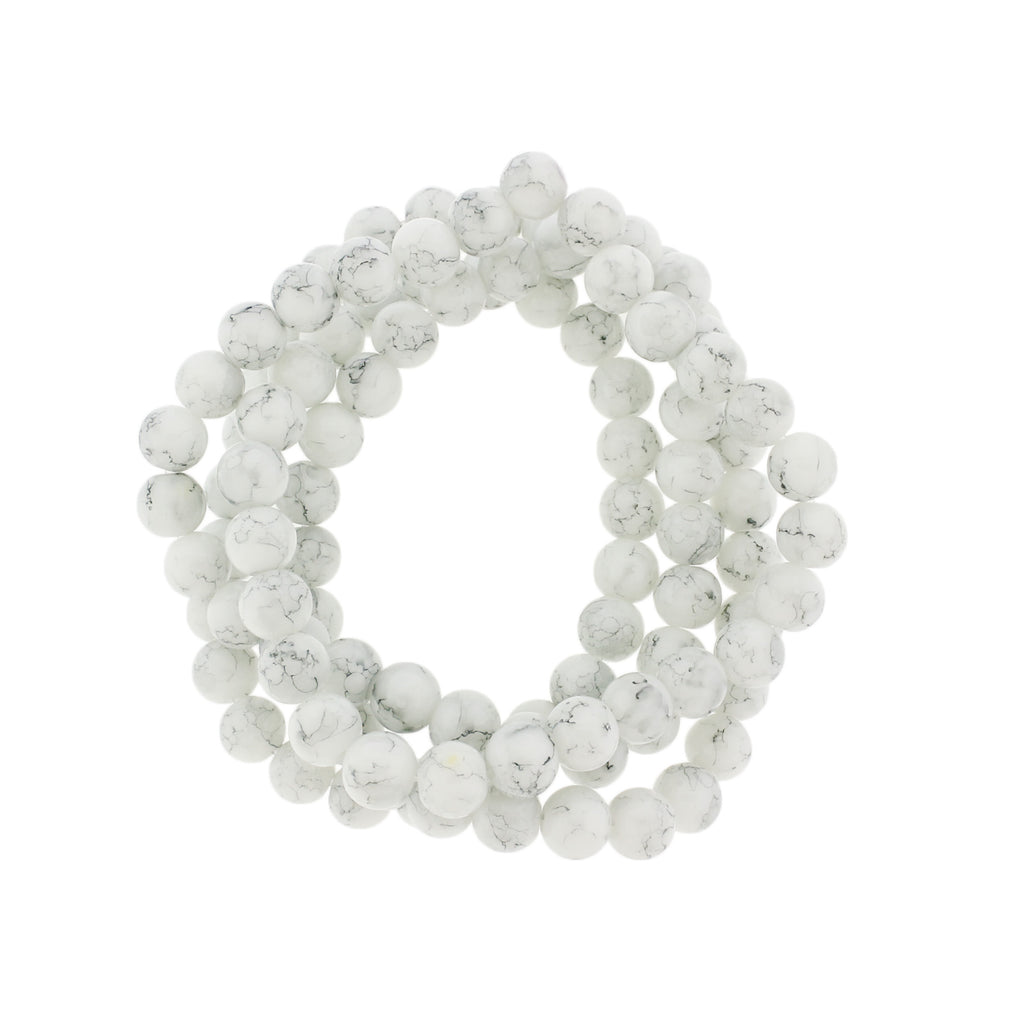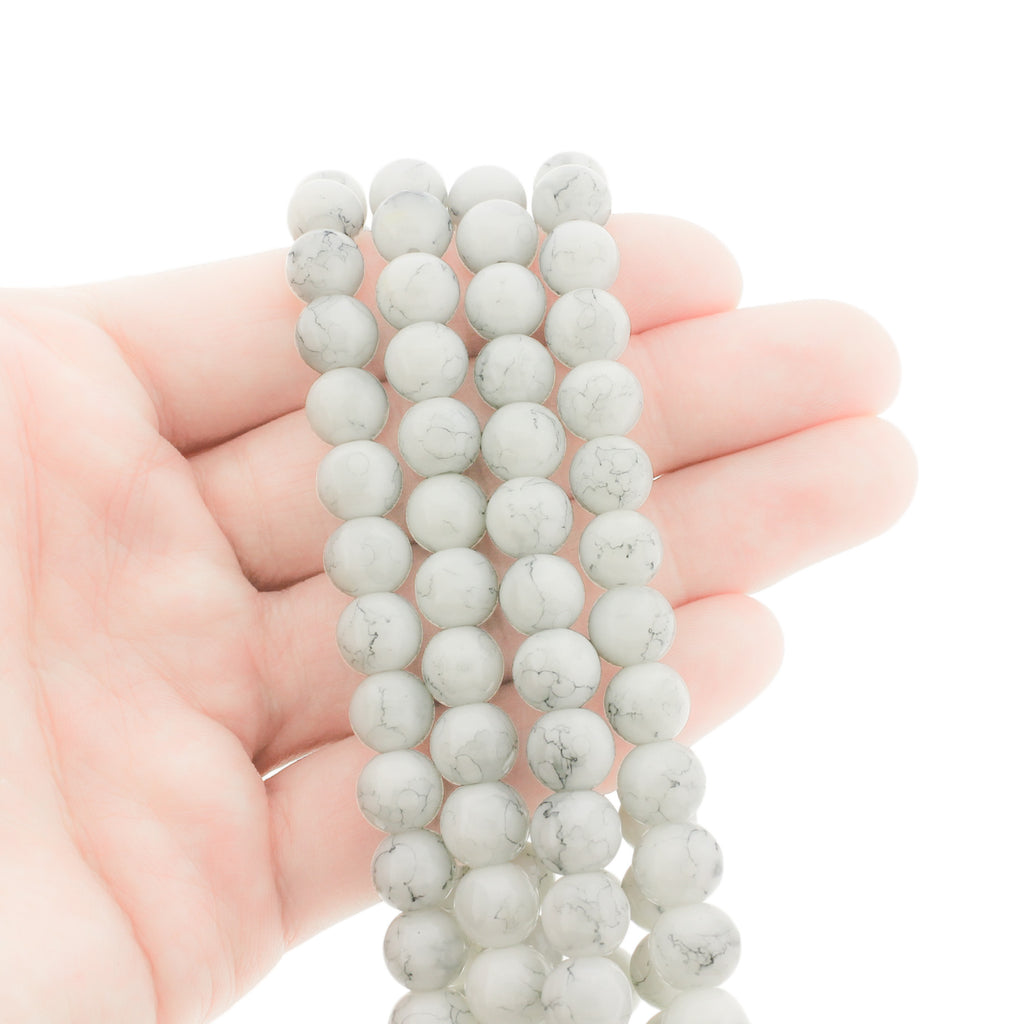 White and grey marble imitation gemstone beads in a 8mm round, with a polished finish.