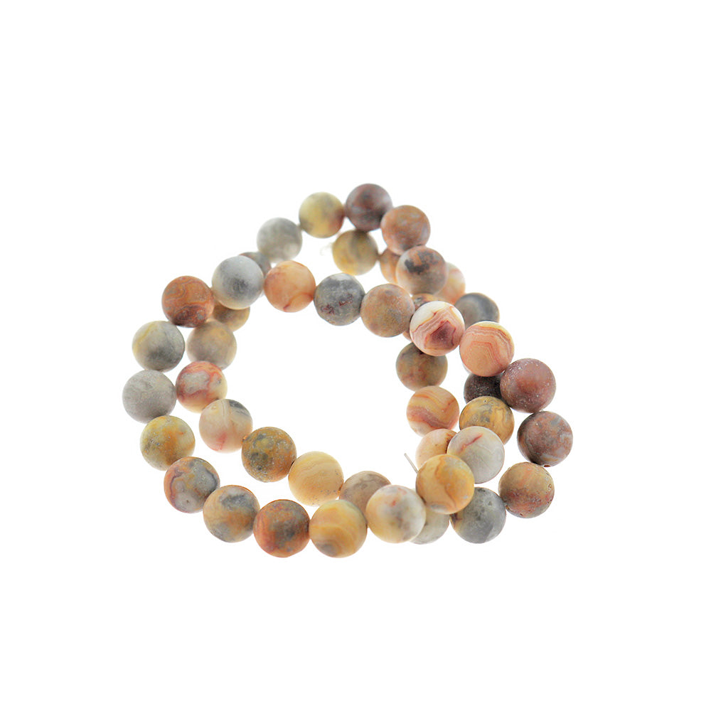 Brown, black, white, yellow and rednatural agate beads in a 6mm, 8mm, or 10mm round, with a frosted finish.
