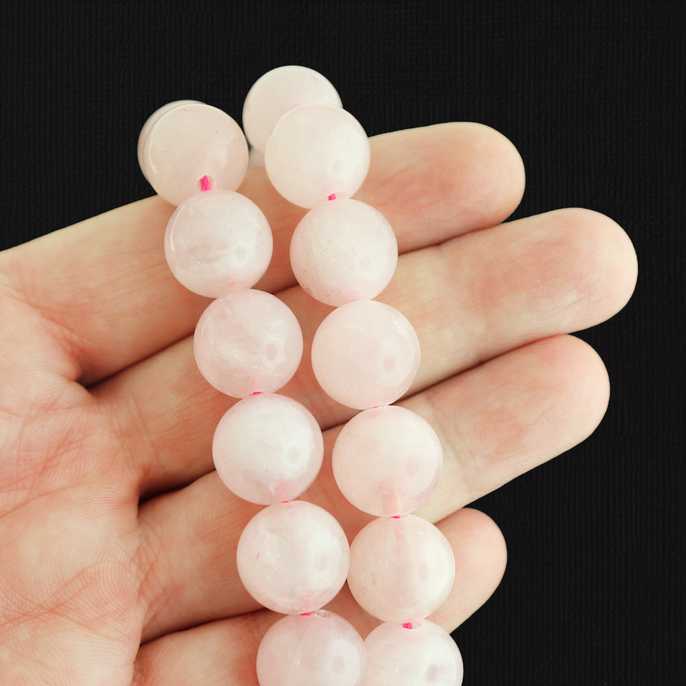 Soft pink natural rose quartz beads in a 14mm round, with a frosted finish.