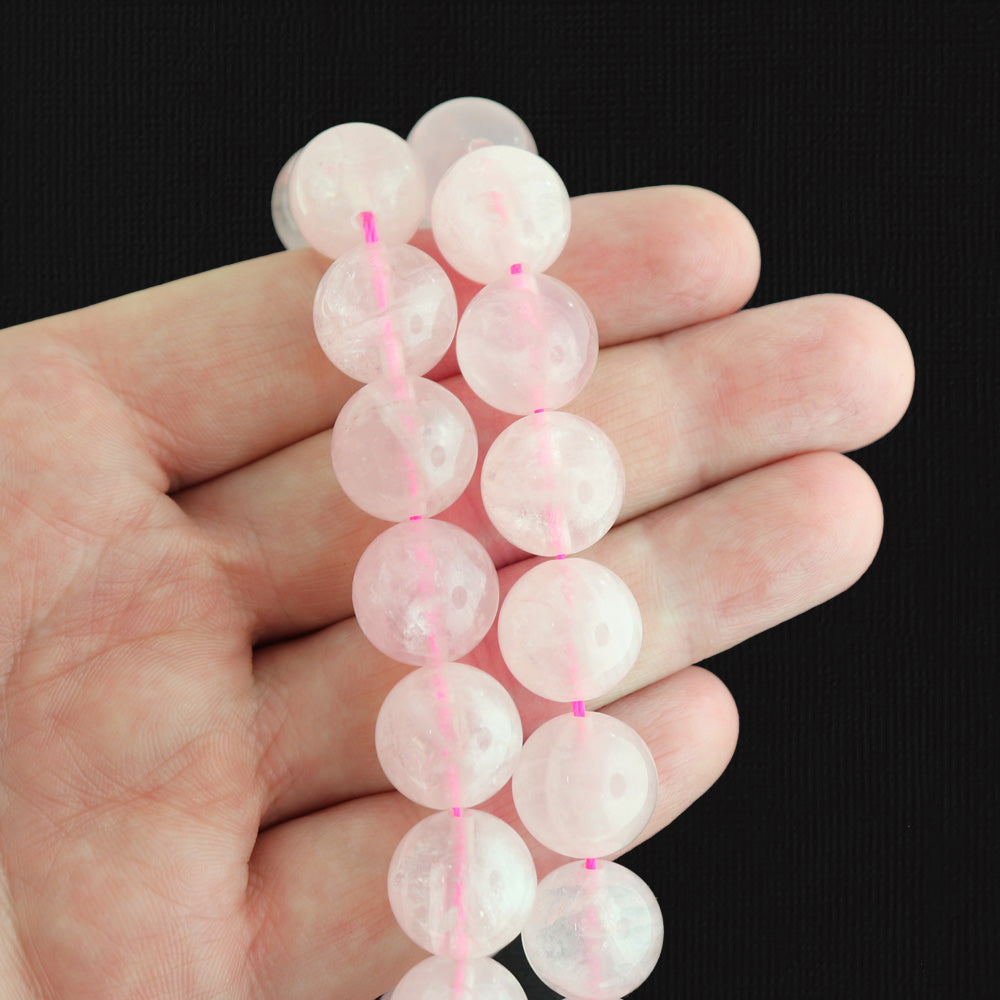 Soft pink natural rose quartz beads in a 14mm round, with a polished finish.