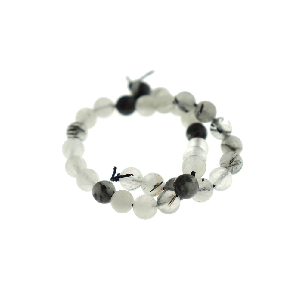Grey and black smokey tone natural rutilated quartz beads in a 6mm round, with a polished finish.