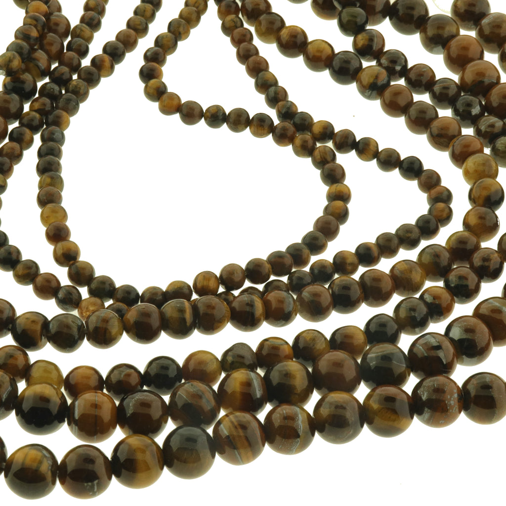 Golden brown tigers eye beads in a 4mm, 6mm, or 8mm round, with a polished finish.