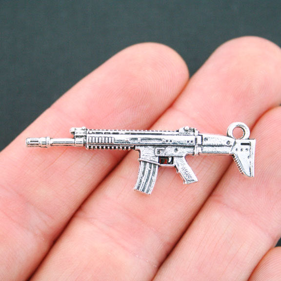 Machine gun antique silver tone charms, in a zinc alloy metal.