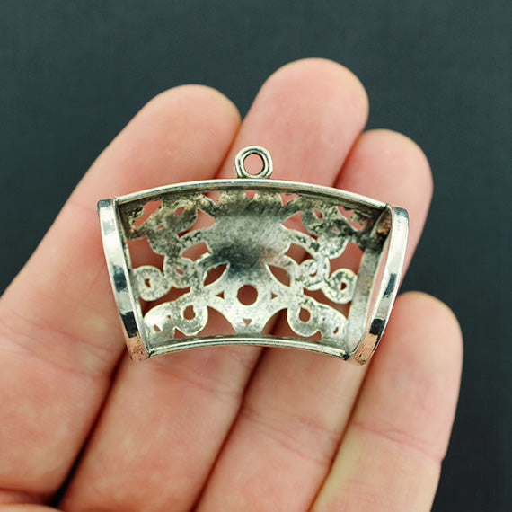 Floral scarf bail antique silver tone charms, in a zinc alloy metal.