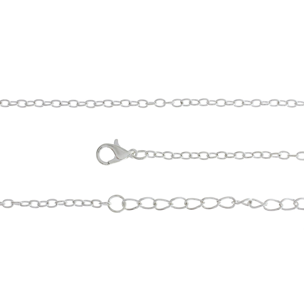 Silver tone cable chain necklace in zinc alloy with curb chain extender, the perfect base for your next jewelry creation!