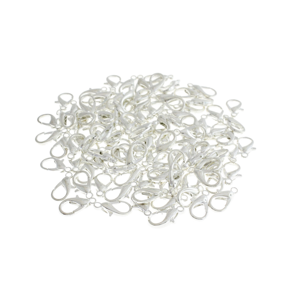 Silver tone lobster claw clasps in a zinc alloy, an absolute staple for any jewelry making project!