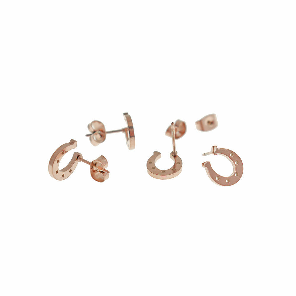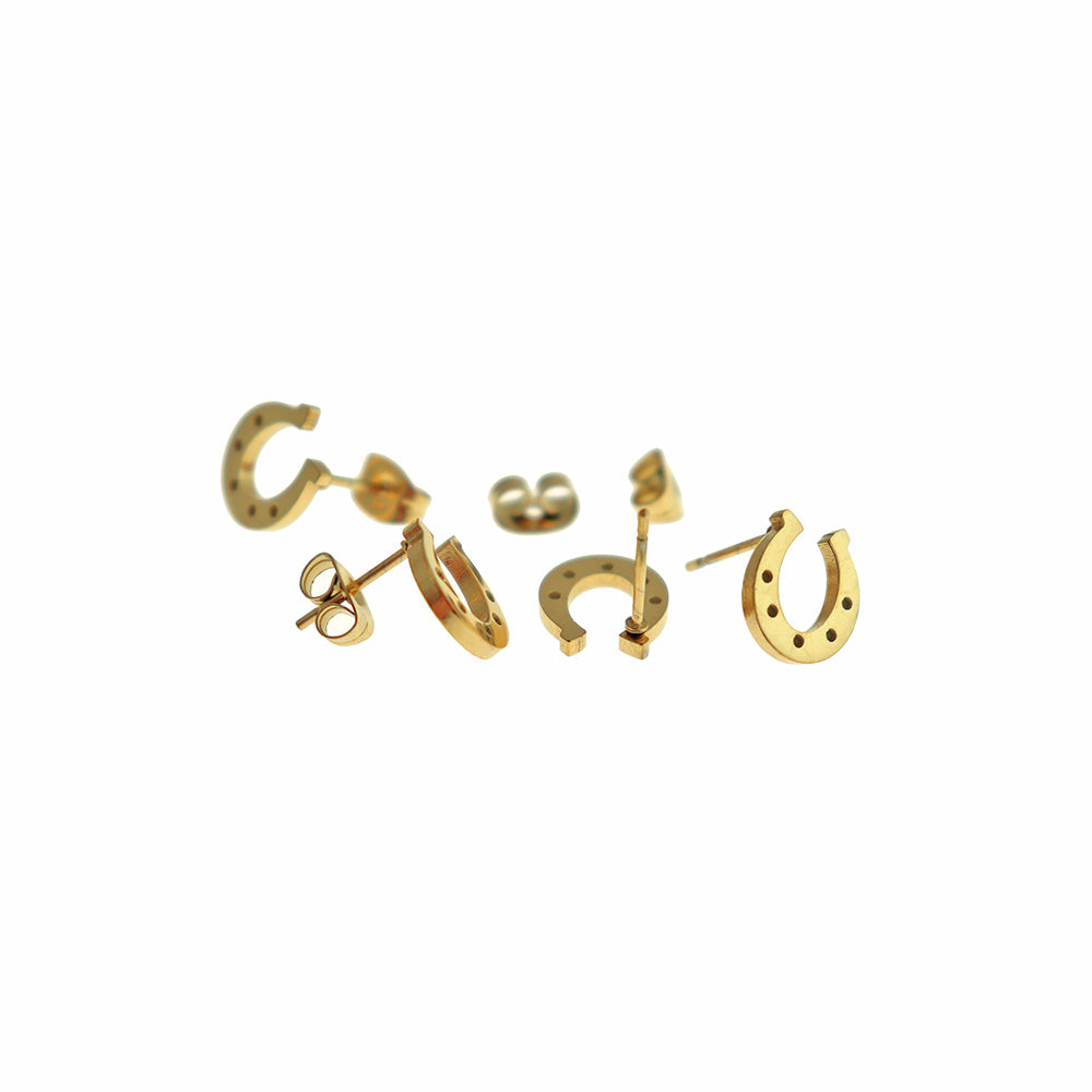 Stainless Steel Earrings - Horseshoe Studs - 10mm x 9mm - 1 Pair - Choose Your Tone!