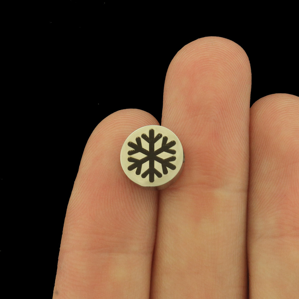 Snowflake laser engraved stainless steel beads. Choose from three sizes - 6mm, 8mm, or 10mm! Perfect to add a personalized touch to a beaded bracelet.