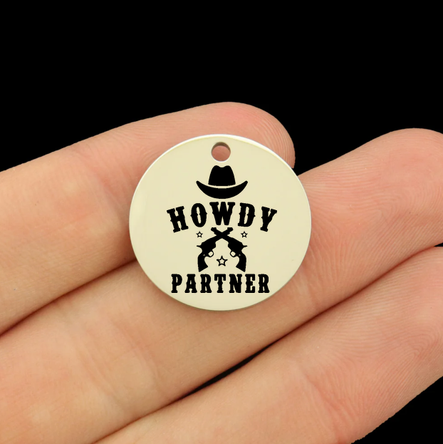 The charms are made from high-quality stainless steel, hand polished on both sides. The gold, rose gold, blue, black, and rainbow finishes are magnetically bonded with colored stainless steel to achieve a durable, permanent plating. All of our charms are hypoallergenic and won't tarnish! The design will not fade, as we don't use any aerosol paints or chemicals in our lasering process. We do all the designing and lasering right here in in our shop!