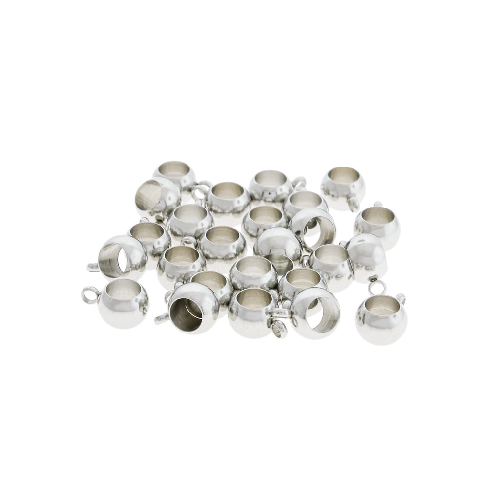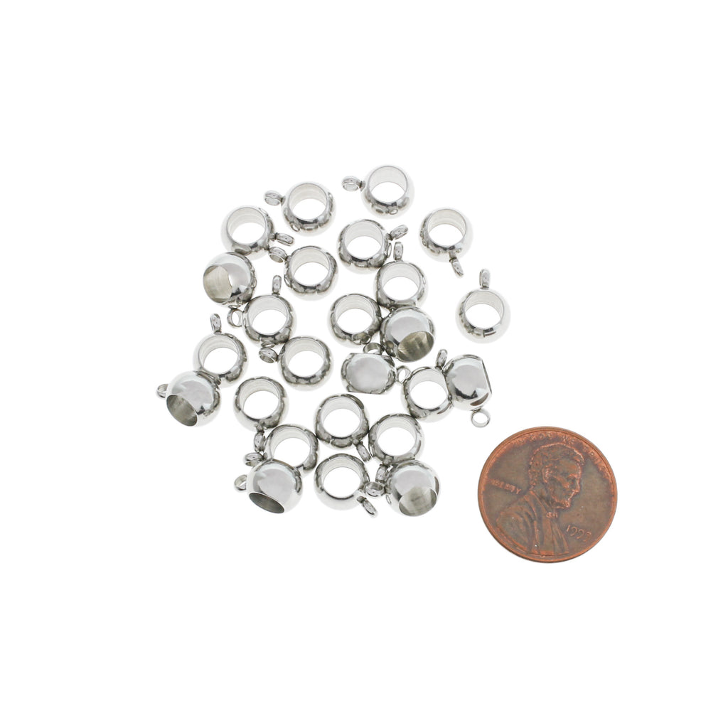Silver tone metal beads in a 11mm x 8mm bail, in a stainless steel with a metallic finish.