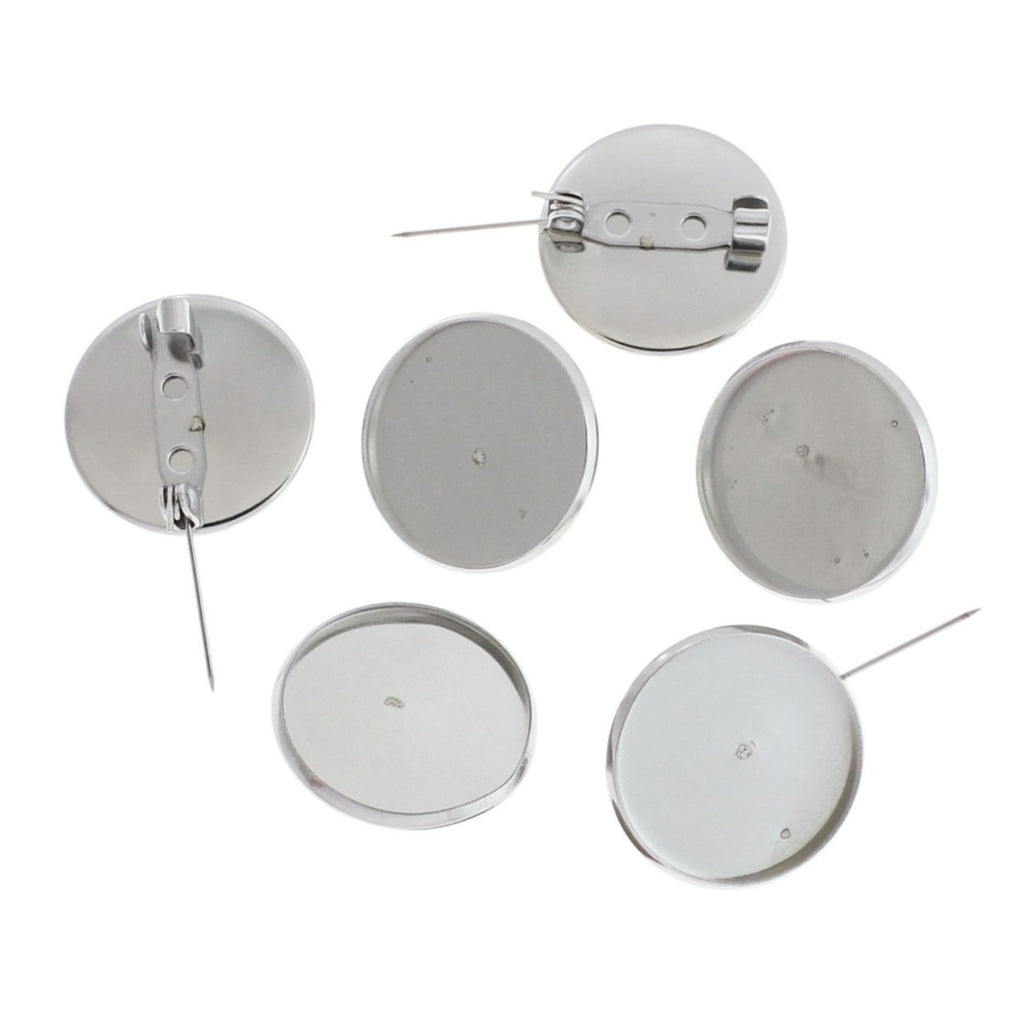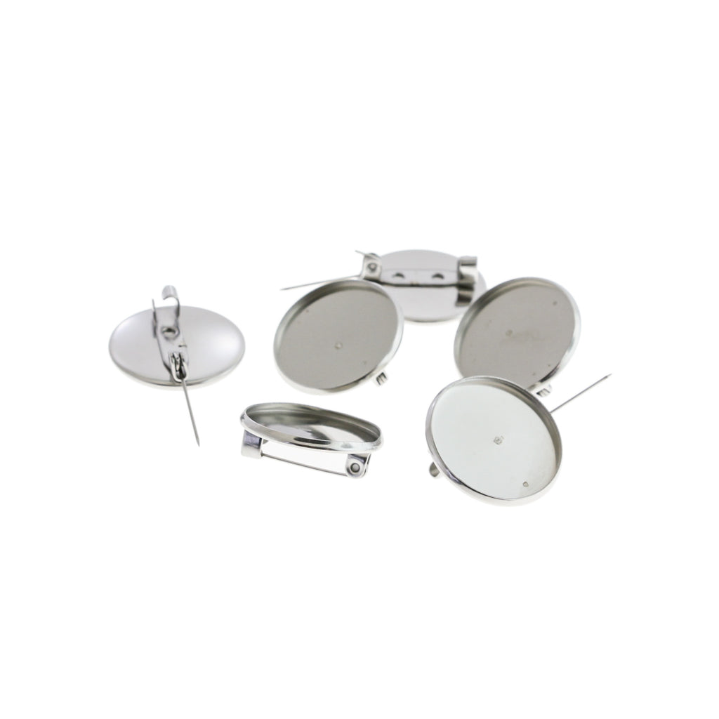 Silver tone brooch pin bases with cabochon settings in 304 stainless steel, the perfect base for your next cabochon creation and all your brooch or pin making projects!