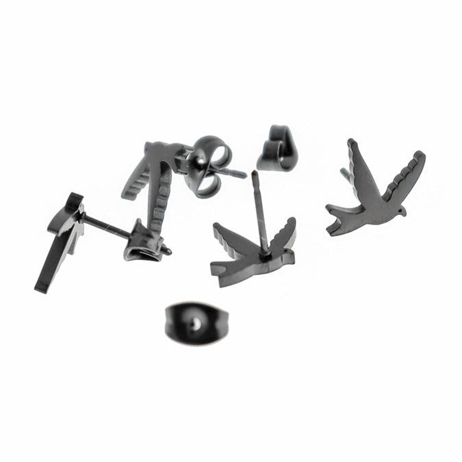 Flying bird stud earrings in 304 stainless steel, perfect for a simple look! Available in silver, gold, rose gold, and black tones.