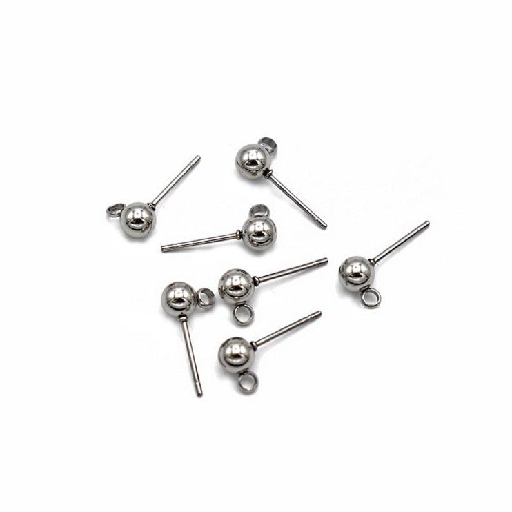 Silver tone ball stud earrings with loop in stainless steel, the perfect base for your next earring creation!
