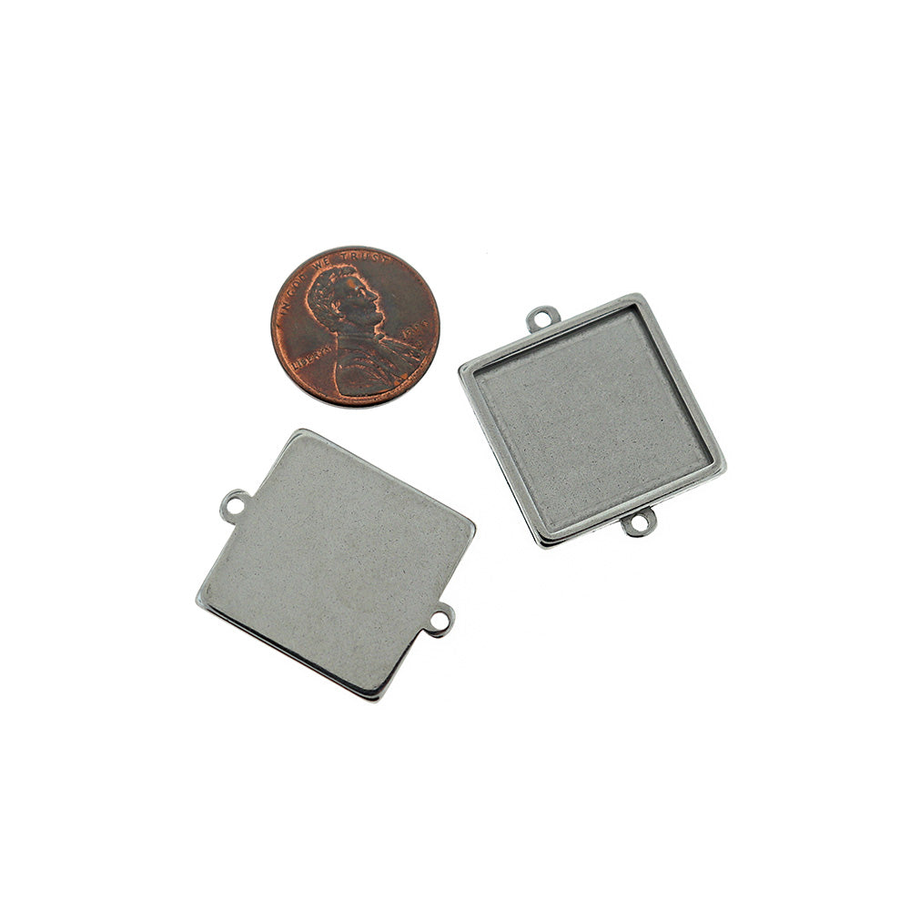 Silver tone square cabochon connector settings in stainless steel, the perfect base for your next cabochon creation!