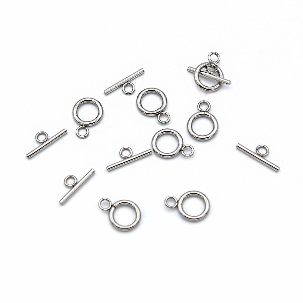 Silver tone toggle clasps, in 304 stainless steel.