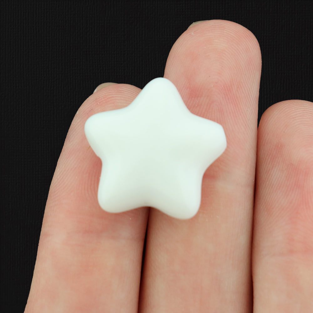 White acrylic beads in a 20mm star, with a polished finish.