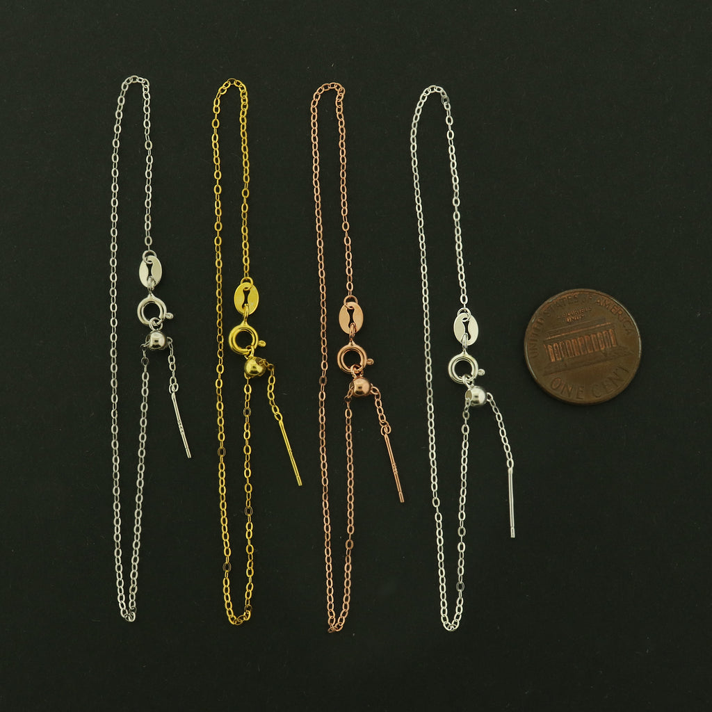 They are all 1.2mm thick and a touch under 7.5" long, super dainty! Each are finished with a spring clasp and a stopper bead.