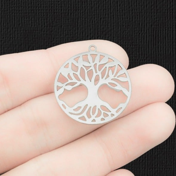 Round tree of life silver tone charms, in 201 stainless steel.