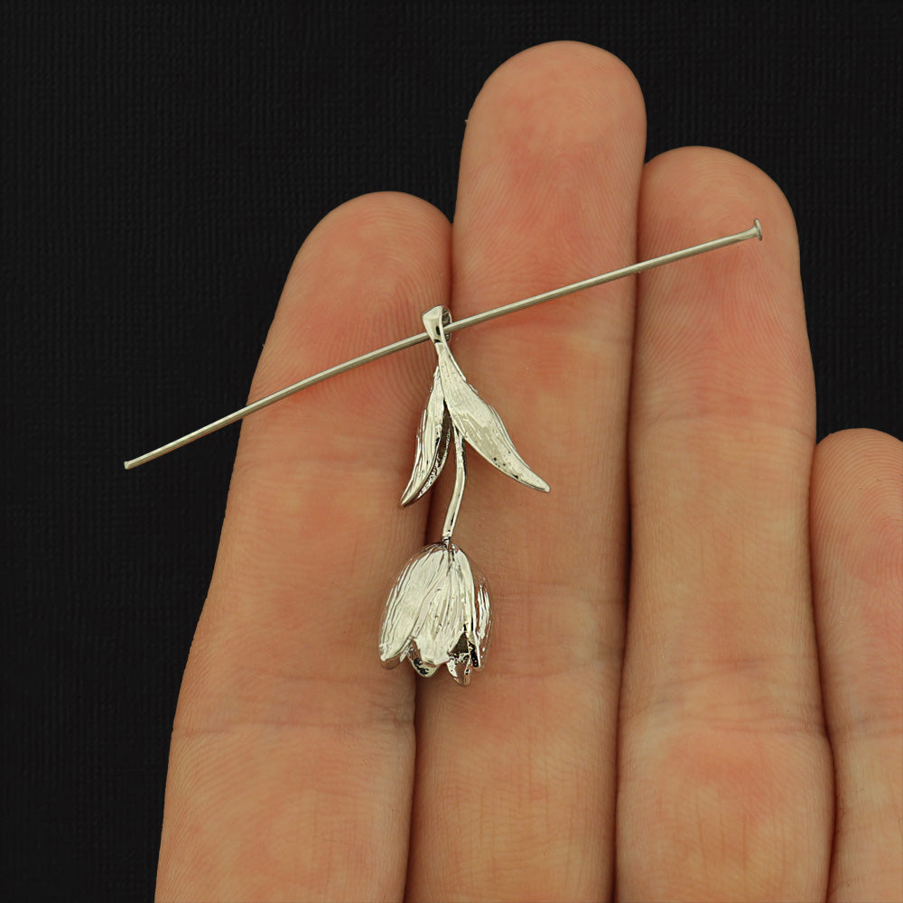 Tulip silver tone charms, in brass.