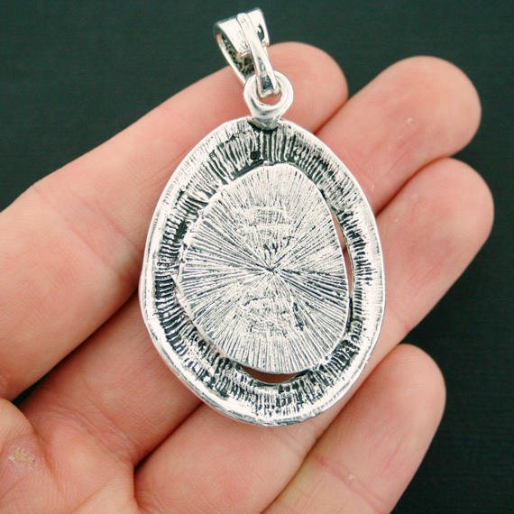 Faux turquoise stone pendent antique silver tone charm with attached loop, in a zinc alloy metal.