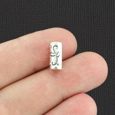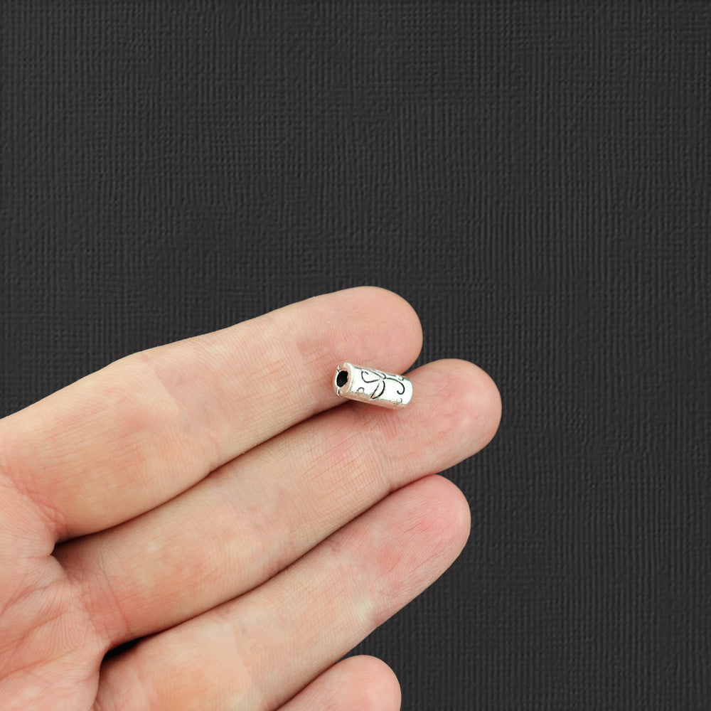 Silver tone zinc alloy metal beads in a 12mm x 5.5mm vine column spacer, with a metallic finish.