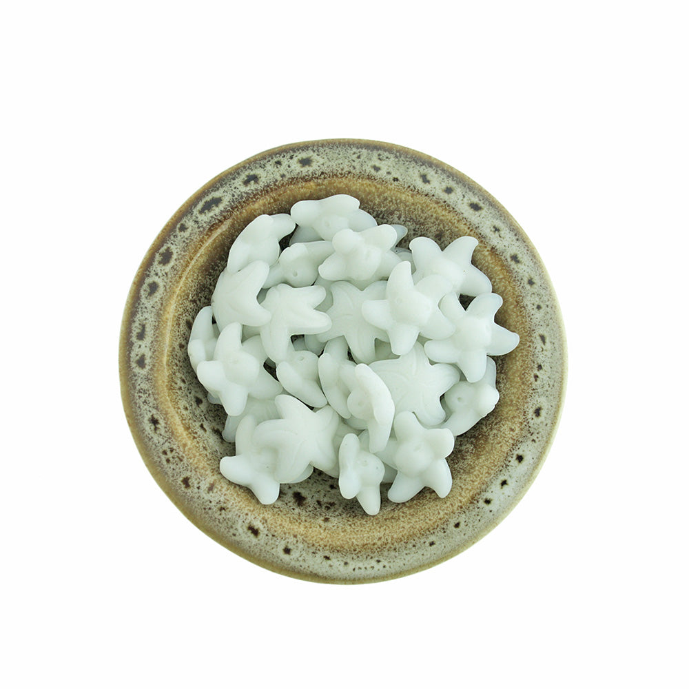 White sea glass beads in a star fish shaped pendant with a pre-drilled hole, in a frosted finish.